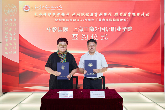 会上,中教国际教育交流中心与上海工商外国语职业学院签约,将立足“职教出海”战略,共建课程与师资库,开展“3+1+1”专升本、专升硕等项目,拓展国际研学交流通道。北京华影未来教育科技集团也与上海工商外国语职业学院签约,将聚焦影视艺术教育与文化创意领域,通过课程共建、实习就业对接等形式,推动美育与产业需求精准衔接,为学生提供更贴近行业的成长平台。