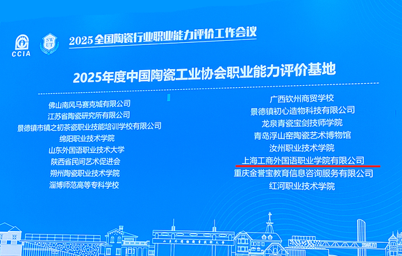 会议期间,凭借在艺术设计教育领域的深厚积淀、对传统工艺传承创新的持续探索以及服务行业发展的积极实践,我校成功获评并正式被授予“2025年度中国陶瓷工业协会职业能力评价培训基地”资质。王李喆、徐傲两位老师作为学校代表接受授牌。