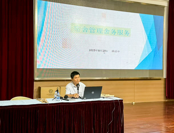 学校后保处深度参与此次培训,彰显校企同心,明确服务方向。后保处处长陈法中、副处长严明、办公室金春花老师全程参与指导。陈法中处长以“宿舍管理舍务服务”为题,为学校全体宿管员作专题培训。陈处长首先概述了学校物业的整体架构,高度肯定了团队“真诚、朴实、负责、务实”的工作品质;随后聚焦宿管岗位,从“学生需求响应”“宿舍矛盾调解”等实务角度展开技能培训,尤其在“宿舍事务管理”关键模块进行深度阐释,并结合学校高质量发展的要求,鼓励物业团队加强与学校的沟通协作,持续“优化服务流程、提升服务能力”。