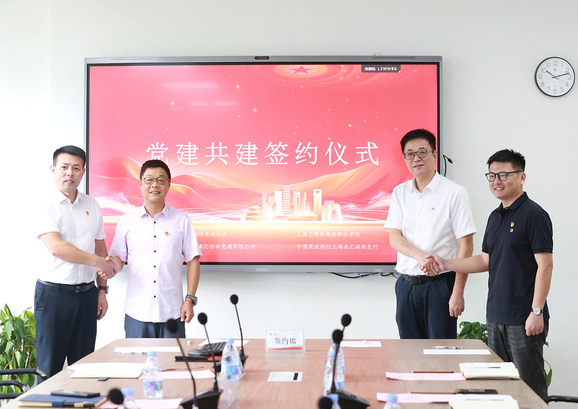 为深入贯彻落实新时代党的建设总要求,积极探索基层党组织合作新模式,构建资源共享、优势互补、互相促进、共同提高的党建工作新格局,9月10日,上海工商外国语职业学院党委、东城社区党委、南汇公共交通有限公司党委、农行上海南汇城南支行党支部四方代表齐聚我校,共同举行以“聚合力,同奋进,开新局”为主题的党建联建签约仪式。
