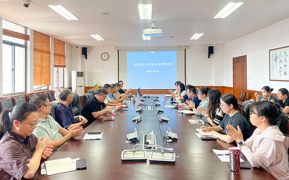 9月24日上午,马克思主义学院新学期首次全体教师大会召开,党委书记万峰,马克思主义学院院长何玉海,副院长陈静、倪丽娜以及学院全体教师参加会议,学院常务副院长沈李主持会议。