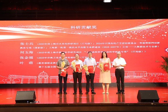 大会现场举行表彰仪式,为两校2025年度新晋教授、副教授颁发聘书,为在国赛、市赛中斩获佳绩的指导教师,以及在教学改革、科研创新中作出突出贡献的教师代表颁奖。同时,为推动学校建设与发展的校领导颁发“特殊贡献奖”,以榜样力量激发育人热情。
