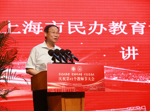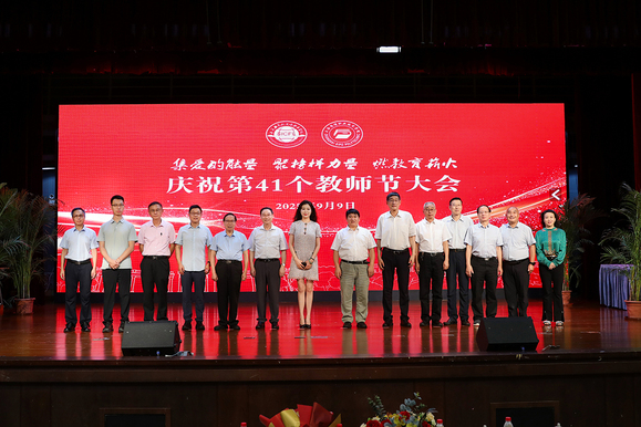上海市民办教育协会会长高德毅,上海市民办教育综合党委副书记江鸿波,上海师范大学原校长杨德广,上海师范大学原校长、上海杉达学院原校长李进,上海中华职业技术学院校长陈锡宝,浙江衢州开化县大溪边乡中心学校校长方泉,南京特殊教育师范学院马克思主义学院院长张九童等领导嘉宾,学校董事长钱莹女士以及两校领导班子成员、中层干部、全体教职员工、部分学生代表欢聚一堂,共同庆祝第41个教师节。大会由上海工商外国语职业学院副校长张辉主持。