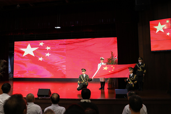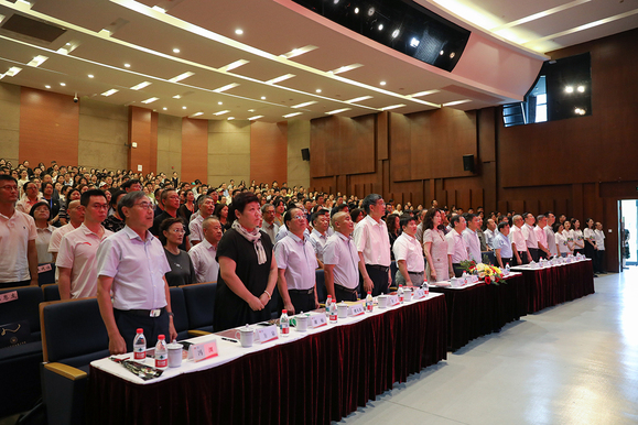 大会在庄严的中华人民共和国国歌声中拉开序幕。全体参会人员起立齐唱,嘹亮歌声回荡礼堂,既饱含对祖国的赤诚热爱,也传递对教育事业的敬畏与坚守,为大会奠定庄重而热烈的基调。