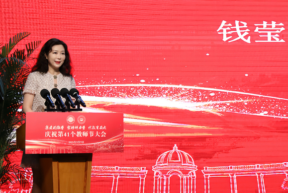 “二十余载栉风沐雨,两校始终以立德树人为根本,在职业教育赛道上稳步前行。”钱莹董事长在致辞中,向辛勤耕耘在教育一线的全体教职工致以节日的诚挚问候,对过去一学年两校在双高校建设、育人模式创新、产教融合深化等方面所取得的成果给予高度肯定,并向每一位为学校发展付出心血的教育工作者表示衷心感谢。回顾两校发展历程,钱莹董事长指出,面对职业教育发展的新形势,两校始终坚持贯彻党的教育方针,在变局中开新局、于危机中抓先机,持续夯实核心竞争力。