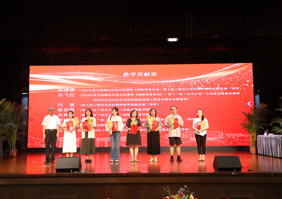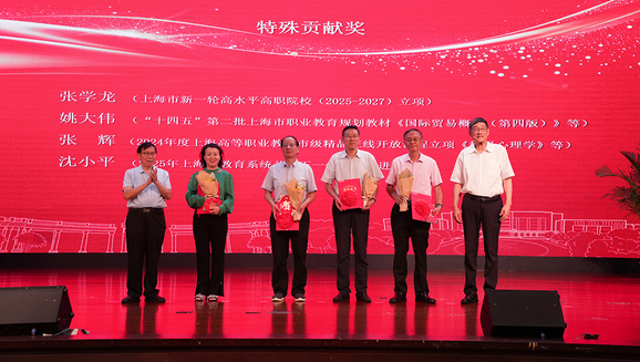 上海工商外国语职业学院校长姚秀平宣读教学贡献奖