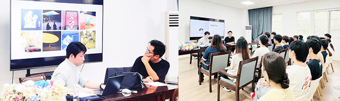 招聘会伊始,派梵公司代表向在场师生详细介绍了企业情况,包括公司的文化理念、发展历程、核心业务领域,以及过往代表性项目与设计作品,其专业实力与创新成果令同学们印象深刻。随后,企业方详细说明了本次招聘的岗位需求、任职资格及行业发展前景,并设置互动答疑环节,并耐心解答同学们关于具体工作内容、技能要求与职业发展路径等方面的问题。