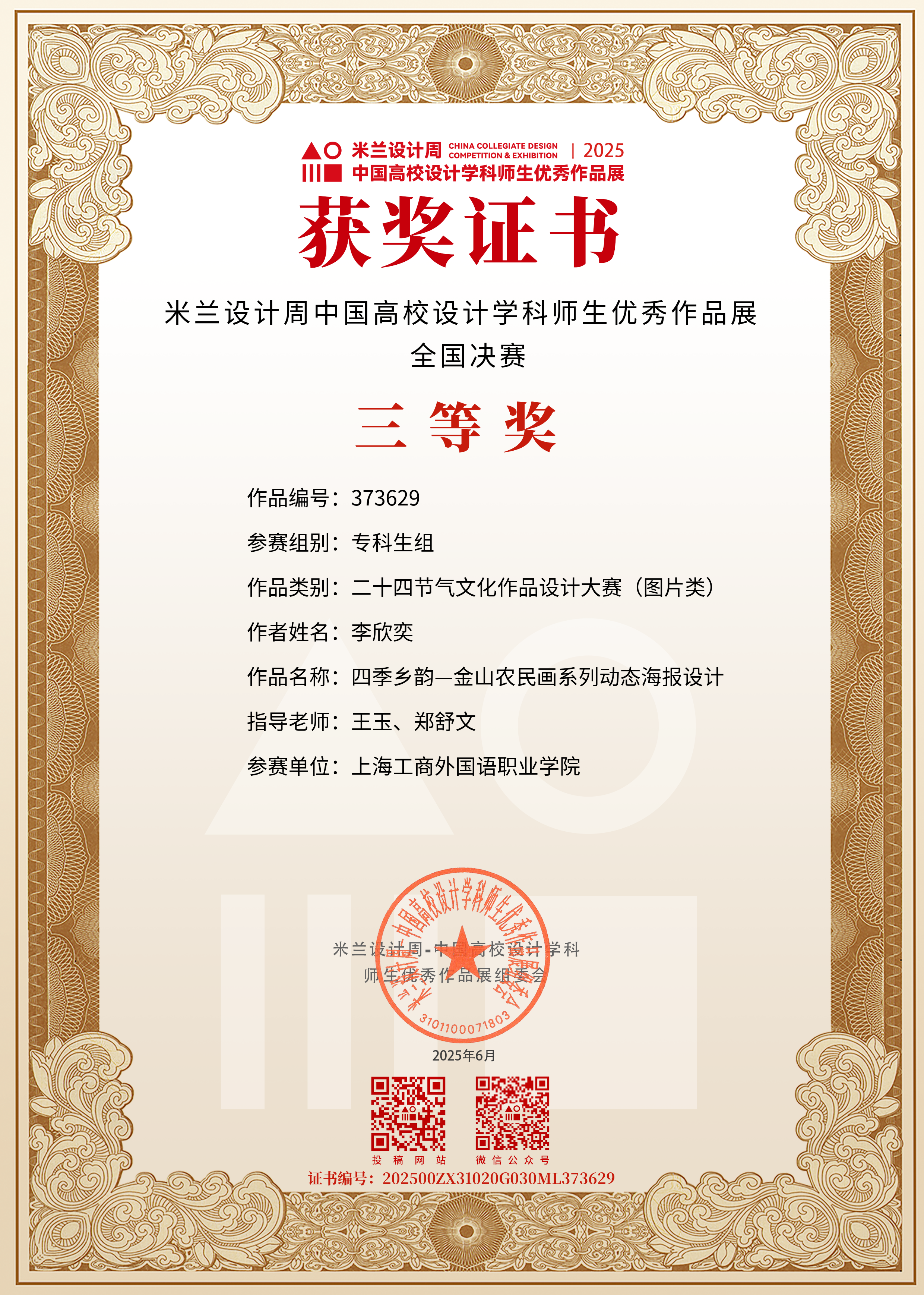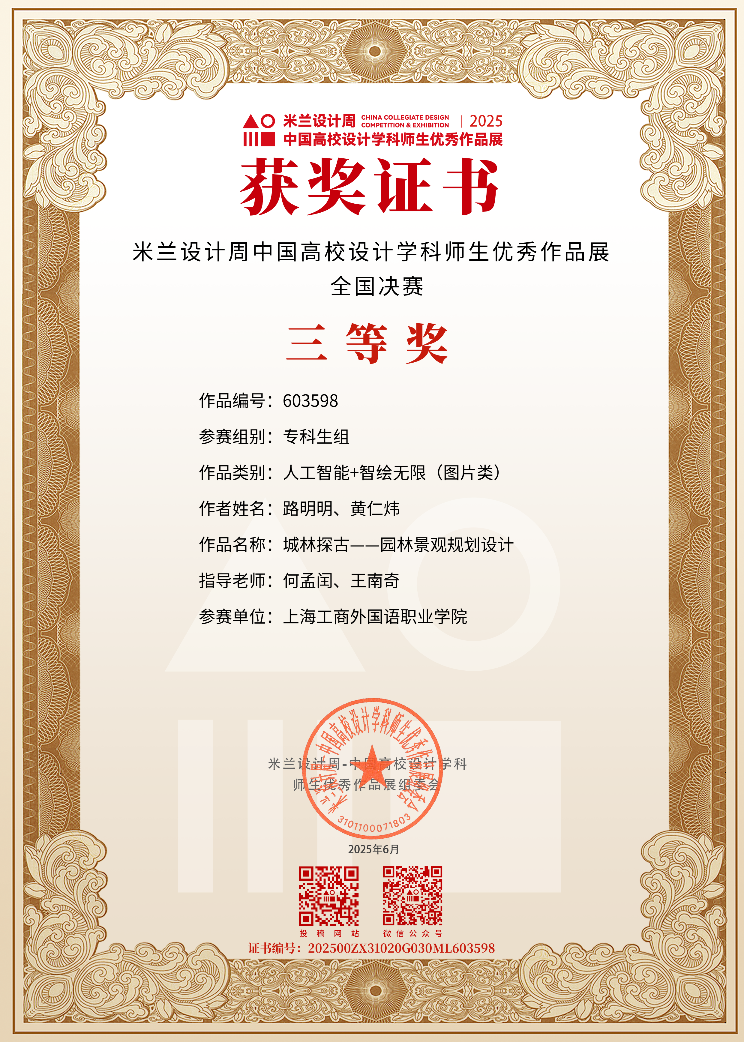在激烈的竞争环境下,获奖师生凭借卓越的创作能力脱颖而出。这些获奖作品主题多元,涵盖视觉传达、环境艺术设计、传统美术等多个领域,将创意构思与精湛技艺深度融合,既展现了前沿的设计理念,又彰显了中国传统文化与时代特色。