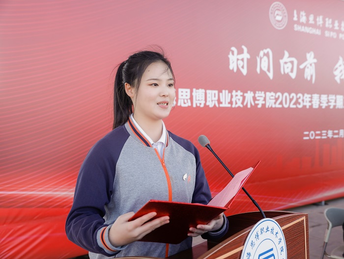 学前2107班的徐韶韩作为学生代表作国旗下的讲话,她向全体同学发出号召,要鼓起满腔的热血继续在新的学年里刻苦拼搏,一起立志做有理想、敢担当、能吃苦、肯奋斗的新时代好青年,让青春在全面建设社会主义现代化国家的火热实践中绽放绚丽之花。