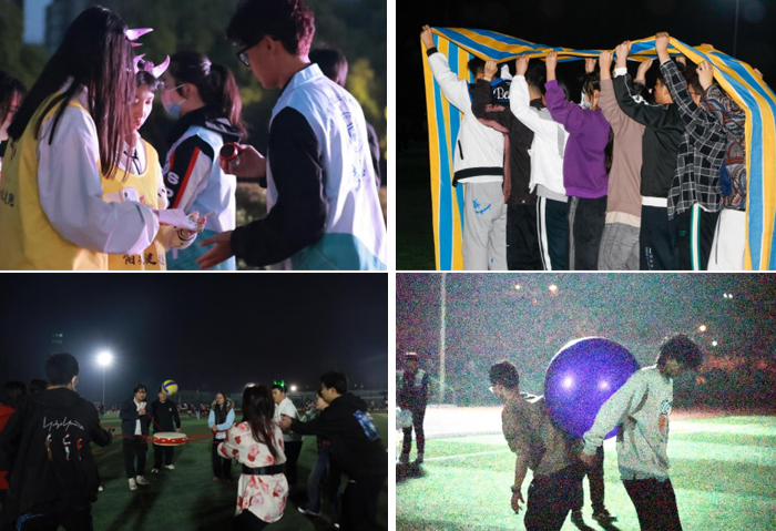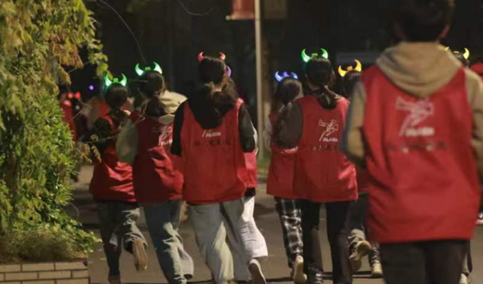 本次荧光夜跑活动分为团队赛和个人赛,个人赛全程路线设置“有理想”、“敢担当”、“能吃苦”、“肯奋斗”四个打卡点。团队赛以学院为单位进行比拼,设置“一鼓作气”、“无敌风火轮”、“齐心协力”、摸石过河”四项素质拓展游戏。