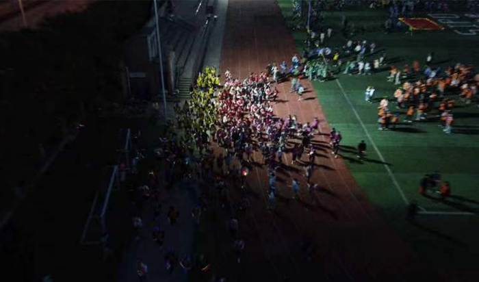 党委副书记张辉宣布开跑,发令枪响,人潮沿着既定路线向前奔涌,放眼望去,一路上荧光熠熠,星光点点,同学们对运动的热情,在这个夜晚,在思博校园被充分的释放和点燃。