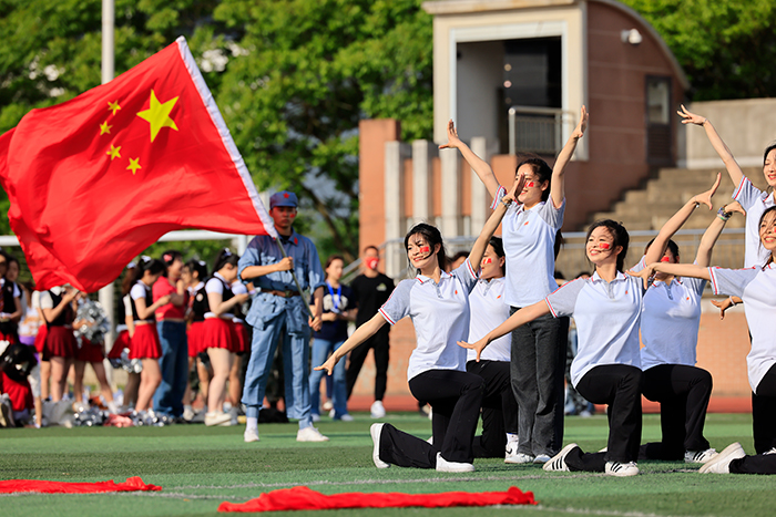 5月16日,“青春如歌,不负芳华”第十一届校园啦啦操展示暨文艺汇演活动在运动场隆重举行,来自六个学院的啦啦操队伍齐聚一堂,以轻盈的舞步、动感的节拍诠释着飞扬青春与无限美好。副校长姚大伟、沈小平,党委副书记张辉等在校校领导、二级学院院长、学管办主任等出席活动。