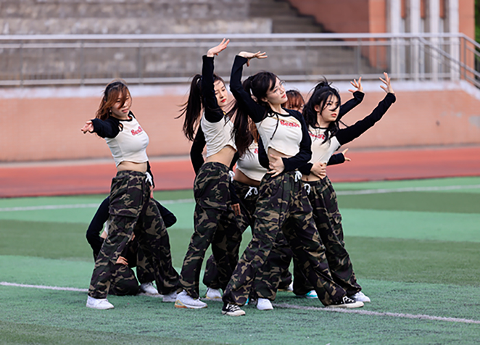 国际商务与管理学院的学生们率先带来啦啦操舞蹈《落日归山海,舞蹈伴青春》,蓬勃朝气的舞姿和精神面貌展现出风华正茂的思博青年永远向阳而生。数字技术与设计学院《HOT PARTY》啦啦操展示中,同学们手捧鲜艳的彩球,舞动在学院绿茵茵的操场上,他们用活力展示着青春舞动营造出在派对中狂欢的氛围。人文与教育学院的学生们带来《以青春之名,奔赴星辰大海》,用她们的热情和行动,展青春之精神,扬学前之风采,气宇轩昂,乘风破浪。健身与管理专业的学生们在《Arouse youth》啦啦操舞蹈中带着自信热情,高难度动作跳出了健身学子的精气神,成就了一道亮丽的风景线。建筑与工程学院同学们的《舞动青春》身姿矫健,舞步轻盈,队形整齐,刚柔并济,舞出了建工风采。卫生技术与护理《青春无限 肆意烂漫》,同学们用扬起的笑容,舞起的花球,用热情和行动为最美的青春,为祖国的未来献礼。