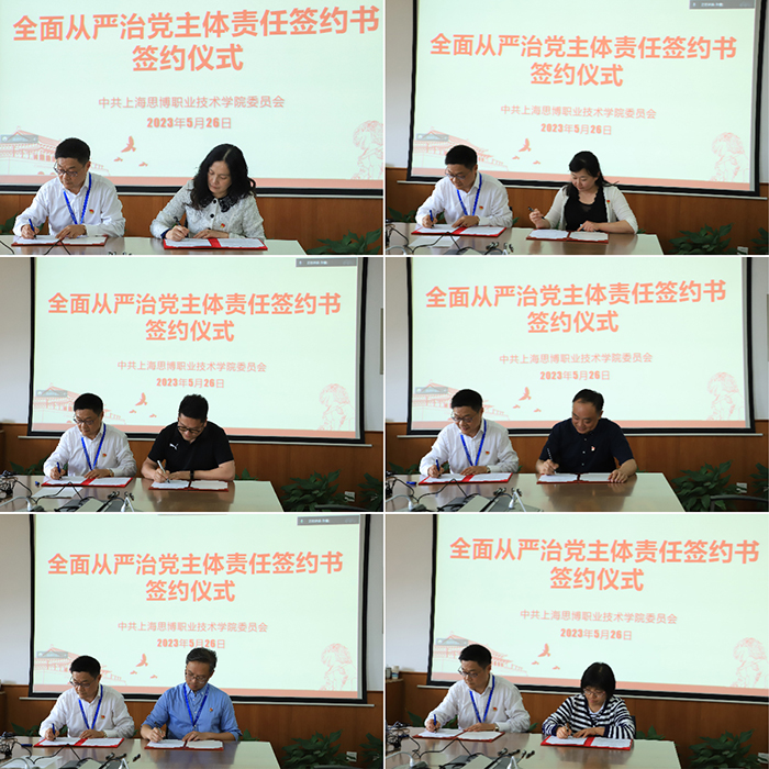 张辉副书记作了《坚定不移全面从严治党——开辟百年大党自我革命新境界》的专题报告,万峰书记对进一步推进全面从严治党工作任务进行部署,并代表学校党委分别与各总支部书记签署了《2023年度落实全面从严治党主体责任签约书》。