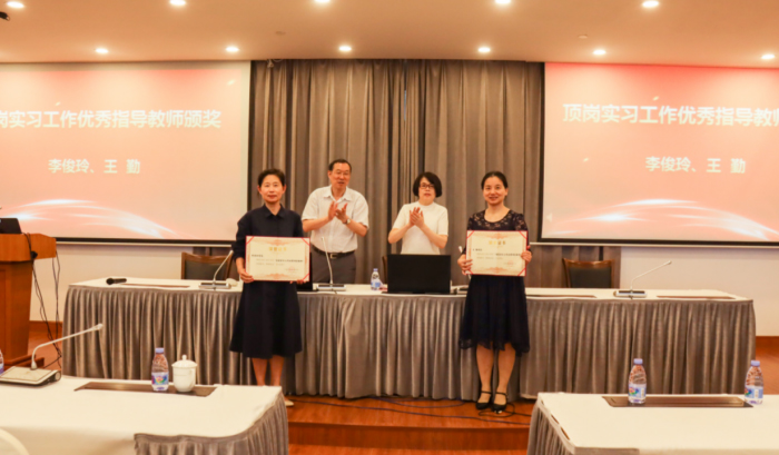 大会进行了表彰和颁奖,卫生技术与护理学院、建筑与工程学院获得校级2022-2023学年顶岗实习工作优秀团队,李俊玲、王勤两位老师被评为顶岗实习工作优秀指导教师,皋玉蒂、张学龙两位校领导为先进集体和个人颁发了荣誉证书。
