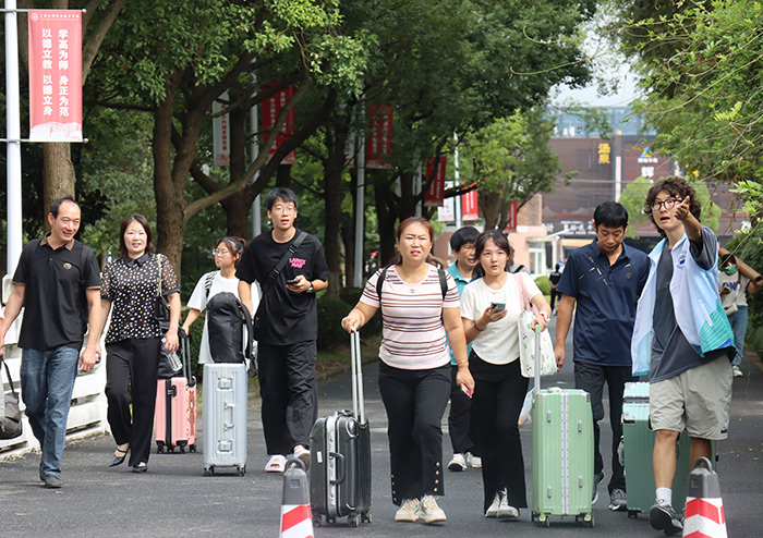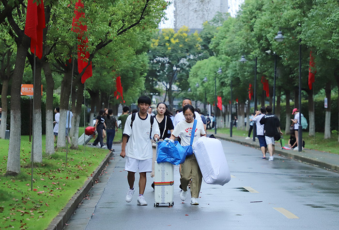 学校坚持以生为本,在惠南地铁站设立接站点,安排迎新专车接送学生和家长到校;在校园内设置行李托运处,用接驳车全天不间断运送新生行李;设立家长休息处等服务点,让学生及家长初入校园就感受到学校的关怀与温暖;开辟“绿色通道”,通过资助政策为家庭经济困难学生解决问题;优化完善数字迎新系统,让新生提前进行线上预报到并完成个人信息补充、学费缴纳、宿舍挑选等流程。迎新现场,不少家庭全家总动员送新生来校报到,在迎新展板前合照留念,共同见证这高兴的时刻。