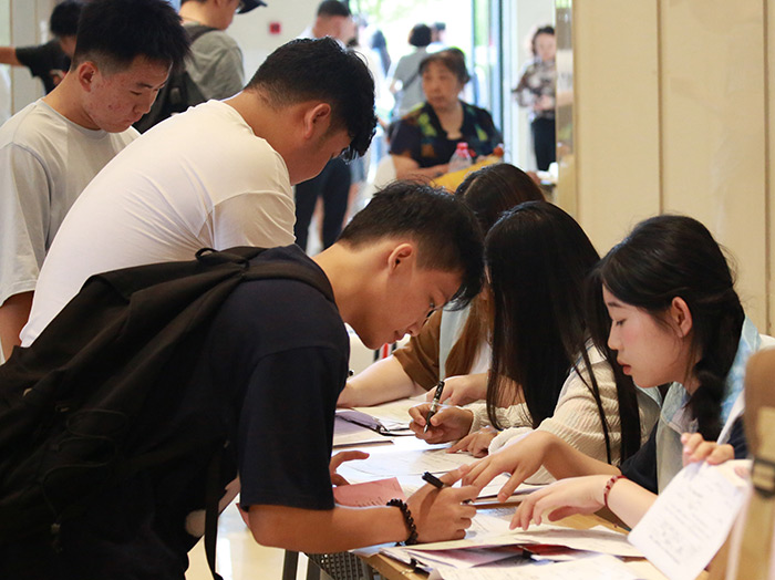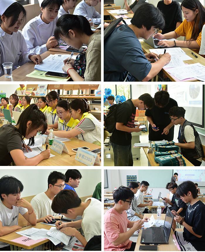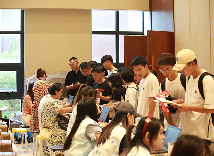 各二级学院的新生报到处是另一番热闹非凡的景象。“同学你是新生吗,是哪个专业的?”“同学,请拿出身份证和通知书,我们核对信息。”“同学,记得拿好你的资料。”在迎新现场,新生辅导员和志愿者热情地迎接着每一位新生和家长,帮助他们顺利完成报到手续。