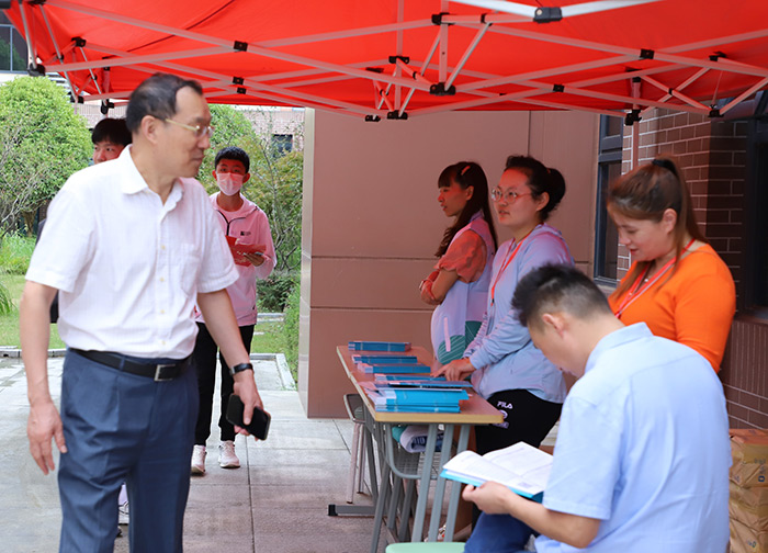 校长皋玉蒂等校领导深入迎新现场了解新生报到工作情况,慰问迎新一线的工作人员及师生志愿者;与新生进行互动交流,了解同学们到校情况和入学感受,并勉励同学们要尽快适应新环境,珍惜时光、树立目标,在青春赛道上奋力跑出优异成绩。