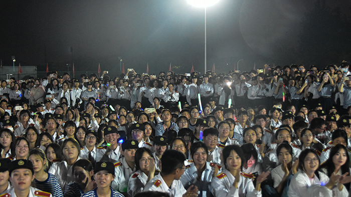 9月25日晚7点,我校“迷彩青春 沐光而行”2023年军民联欢会暨新生迎新会在体育场举行,军训大队长房智、校长皋玉蒂、副校长张学龙、党委副书记张辉以及各二级学院分管领导、部队教官、学管办主任和辅导员老师们与2023级新生相聚在这美妙的夜晚,共赴一场绚丽的青春盛宴。