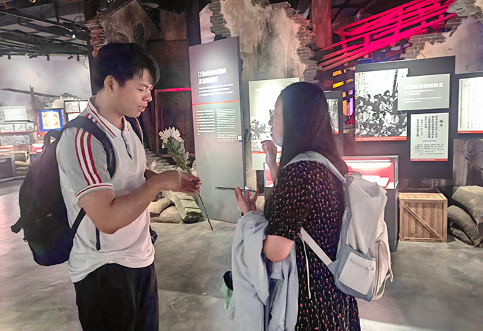 除校级的庆祝活动外,各二级院系也为同学们准备了丰富的假期安排。9月29日-10月7日,护理学院、国商学院、教育学院、建工学院、数字学院、健身指导与管理专业在不同时间段安排了中秋茶话会、红色场馆、名人故居参观学习、周边游打卡、爱国电影观影、手工制作、趣味运动、球类比赛等形式多样的欢庆教育和特色庆祝活动。其中,9月30日教育学院青年师生前往上海淞沪抗战纪念馆参加烈士纪念日公祭活动,受到了上海新闻频道的报道。《文汇报》记者还对学前2106的郑烨同学进行了采访。