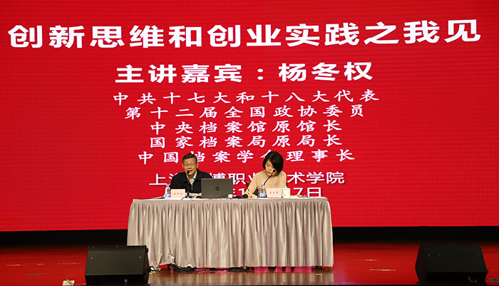 10月17日下午,全国政协委员、中央档案馆原馆长、国家档案局原局长、中国档案学会理事长杨冬权先生应邀来校作讲座,引起与会者的高度反响。校长皋玉蒂主持讲座,师生500余人聆听了这场高规格讲座。