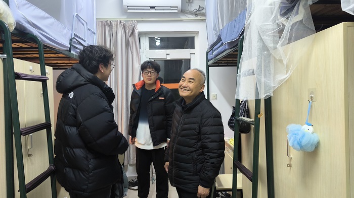 傍晚时分,校长黄正、党委副书记张辉及学生处主要负责人深入学生自习室、室内体育馆、学生宿舍等地走访,进一步了解学生返校情况,为同学们送去新学期的关心和问候。走访中,黄校长与相关学院负责人、辅导员老师、宿管阿姨深入交流,详细了解学生返校的学习生活情况,在宿舍与同学们亲切交流,叮嘱大家要增强安全防范意识,保持室内整洁和日常通风,努力营造和谐温暖的寝室氛围和舒适整洁的学习环境。同时也勉励同学们要以崭新的姿态投入到学习中去,做好规划,积极参加学校各项文化体育活动和社会实践活动,为日后步入社会干事创业积攒能力和经验。