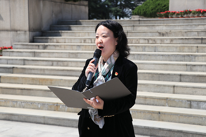 退役士兵夏恩俊同学作主题发言,李博同学作为学生代表领誓。张辉副书记以《缅怀先烈守初心,永葆本色跟党走》为主题,号召青年大学生追寻革命英雄足迹,学习革命先烈优秀品质,树立远大理想,厚植爱国情怀。