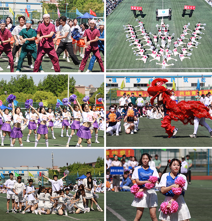 紧接着,“舞动青春,热‘啦’滚烫”啦啦操比赛火力全开。动感的音乐响起,来自各院系的6支啦啦操队伍精彩开跳,他们朝气蓬勃,锐意创新,舞步翩翩,动作多变,激烈比拼,结合专业特色、融合创传统文化各展风采,彰显活力与希望,放飞青春和梦想,带给师生运动与美的视觉享受。