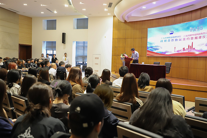 党委书记万峰在致辞中指出,我校近年来在产教融合方面取得了一定的成就,积极推动深化校企合作,形成了多层次、多领域的合作格局。此次与上海湃喏文化科技有限公司达成战略合作,将共同建设人才培养基地,不仅是双方深化产教融合、实现优势互补的重要举措,也为学校产教融合再添新阵地。期待校企双方今后深入合作交流,共同推进人才培养模式的创新与发展,努力为社会培养更多具有职业素养和实践能力的高素质技术技能人才。