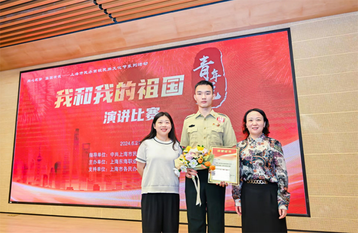 为庆祝中华人民共和国成立75周年,激发广大青年的爱国之情,在近日举行的上海民办高校民族文化节系列活动之“我和我的祖国”青年说演讲比赛中,有来自上海市13所民办高校的优秀青年学子同台竞技,经过激烈角逐,我校退役学生陶翰宇荣获大赛二等奖。我校党委副书记张辉受邀参加本次活动。