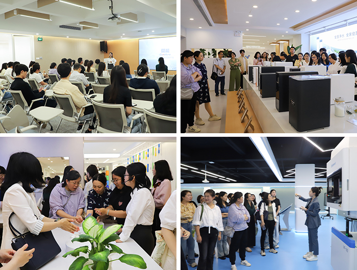 活动伊始,在上海原能细胞生物低温设备有限公司人事总监杨卉卉的热情接待下,副校长张学龙,学校董事会顾问皋玉蒂,建筑与工程学院院长刘毅,人文与教育学院副院长吕梦思及人文与教育学院党支部党员教师参观了张江原能细胞产业园展厅,深入了解公司在细胞生物低温存储领域的先进技术和研发实力。