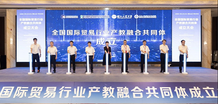 7月2日,全国国际贸易行业产教融合共同体成立大会在浙江义乌举行,来自全国各地的本科院校、职业院校、科研院所、行业组织和企事业单位等154家单位加入了该共同体。