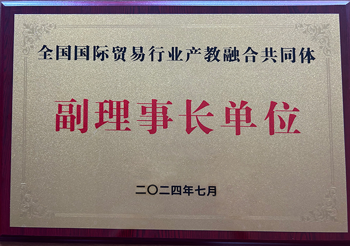 全国国际贸易行业产教融合共同体是在全国外经贸职业教育教学指导委员会的指导和支持下,由中国国际贸易学会、浙江中国小商品城集团股份有限公司、浙江工业大学、义乌工商职业技术学院共同牵头组建。深圳职业技术大学、金华职业技术大学等150家单位当选为副理事长单位、常务理事单位和理事单位。我校受邀参会并被授予副理事长单位。