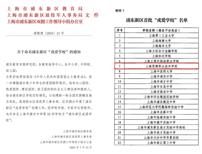 作为浦东新区“戎爱学校”阵营中的8所高校之一,学校于4月中下旬向浦东新区人武部、区退役军人事务局和区双拥办提交了“戎爱学校”创建申报材料,经过专家评议,学校成功跻身首批获评学校行列。这不仅是对我校国防教育工作的高度肯定,更是对未来发展的有力鞭策。