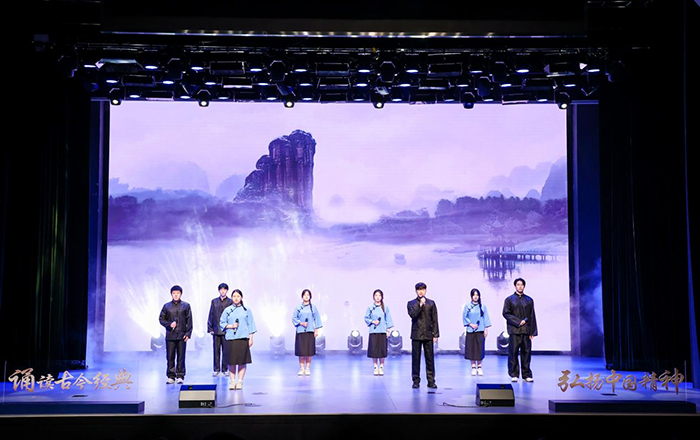 大赛汇聚了众多高校诵读爱好者,经过激烈选拔,我校作品《寻李白》脱颖而出,成功晋级决赛。经过长时间备赛,思博学子们在比赛中展现出深厚的诗词文化底蕴与卓越的语言艺术风采,他们以声传情、以情动人,用自己的声音和理解,赋予了经典诗词新的生命和意义,每一句诗词的吟诵都饱含深情,展现了中华诗词的无限魅力,为传承与弘扬中华诗词文化添上了浓墨重彩的一笔。