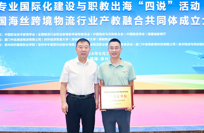 9月26日,专业国际化建设与职教出海“四说”活动暨全国海丝跨境物流行业产教融合共同体成立大会在黎明职业大学举行,来自全国各地的物流行业组织、学校、物流企业等近百家单位代表220余人共同参与。会上,我校被推选为共同体副理事长单位。