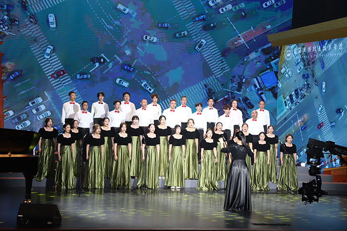 歌会现场气氛热烈,各高校师生们歌声嘹亮,唱响了对祖国的赞美之歌。我校师生演唱的曲目《走向复兴》,旋律优美,情感真挚。师生们通过多声部的合唱,将歌曲中的情感演绎得淋漓尽致,赢得了现场观众的热烈掌声。在此前的网络投票中,我校选送曲目也是名列前茅。