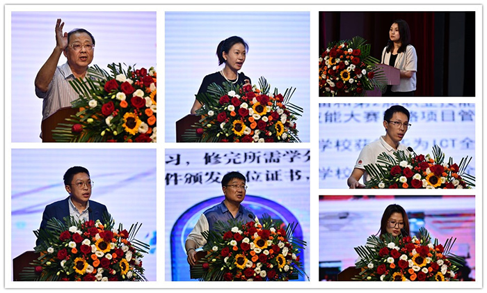 学院印润远教授以深入浅出的方式,为新生详细阐述了数字学院各专业的独特魅力与核心课程,激发了同学们对专业知识的好奇心和求知欲。来自业界的赵伊晨总经理,结合自身丰富的从业经验,为新生描绘了大数据行业的广阔前景,并强调了从业者应具备的数据分析、创新思维及团队协作能力等职业素养。吕艺青老师以生动的案例和前沿技术,展示了虚拟现实(VR)专业的无限可能,鼓励新生勇于探索未知,成为未来科技领域的创新者。周亚军老师详细介绍了华为ICT学院的合作成果及华为系列认证体系,为有志于投身ICT领域的新生提供了清晰的职业路径规划。华为技术有限公司上海代表处翟彦杰经理向新生们分享了企业对人才的需求与期望,鼓励大家积极参与实践,不断提升自我,为成为行业精英打下坚实基础。终生教育学院陈伟老师详细解读了上海全日制专升本政策,并介绍了学院未来发展规划,为新生提供了清晰的学业规划蓝图。优秀毕业生代表陈怡婷同学分享了自己在数字学院的成长经历与心得,用亲身经历激励着每一位新生勇敢追梦,不懈奋斗。