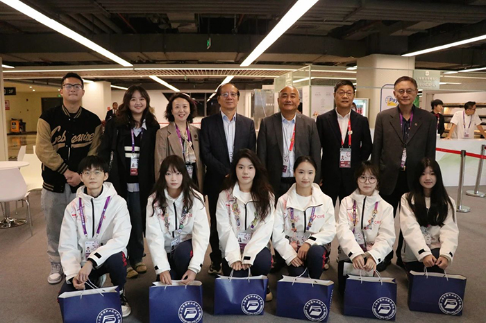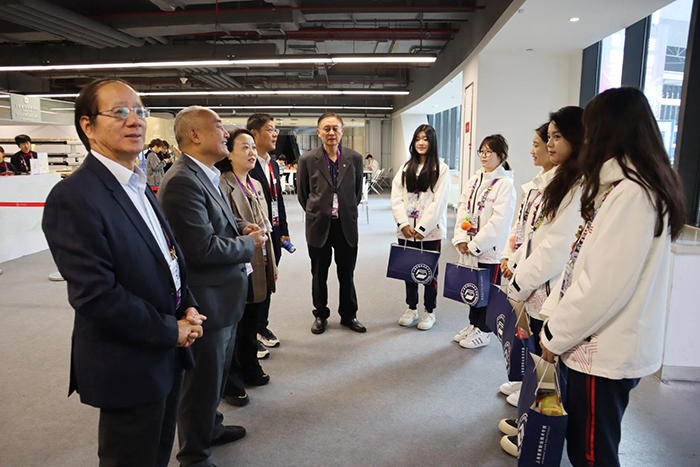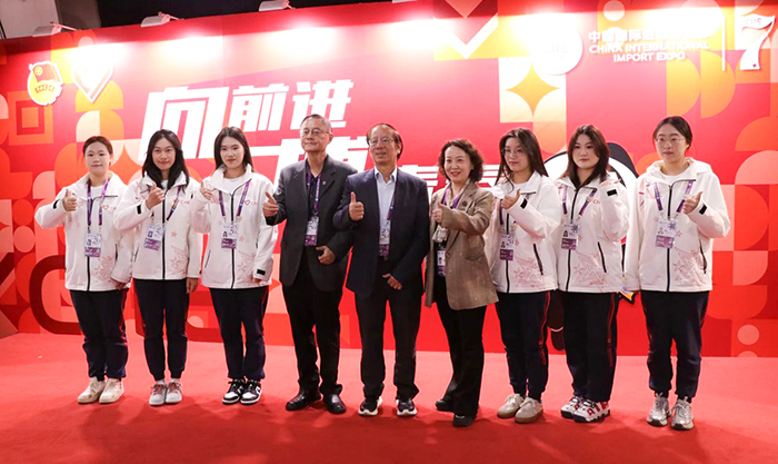 11月7日,校长黄正,党委书记万峰,党委副书记、副校长姚大伟,副校长沈小平,党委副书记、副校长、纪委书记张辉一行来到进博会现场,亲切关怀正在岗位辛勤工作的思博“小叶子”们,校团委书记眭灵钰陪同慰问。