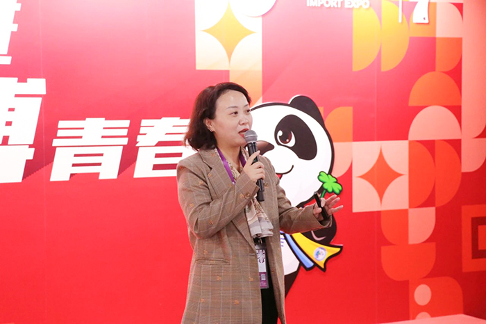 张辉副书记以《青春闪耀党旗下:争做新时代社会主义建设的中坚力量》为主题,在进博现场为思博“小叶子”们上了一堂生动的微党课。课堂上,她从新时代青年所肩负的历史使命出发,深入剖析了青年在社会主义建设中的重要作用。她指出,青年是国家的未来和民族的希望,更是新时代社会主义建设不可或缺的中坚力量,进博会是一堂让青年学生坚定理想信念的思政课,同学们要珍惜这次宝贵的机会,将中华优秀传统文化推向世界,全方位展现中国青年的精神风貌。