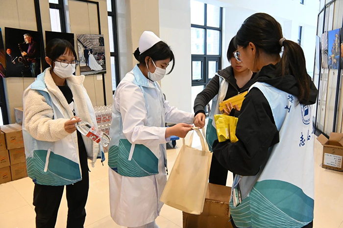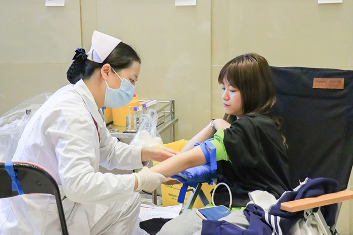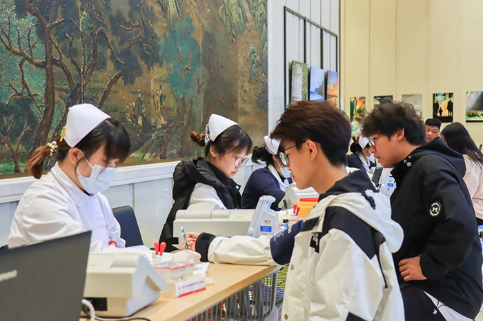 学校高度重视本次无偿献血活动,为献血学子提供了丰富的营养补给,并精心组建了一支专业的志愿者队伍。他们分工明确,积极配合现场医务人员工作:一部分负责维护现场秩序,确保活动有条不紊地进行;一部分负责发放所需物资,细心地确保每位献血同学都能得到及时且恰当的照顾;还有一部分则细心地陪伴在同学们身旁,密切关注他们的身体状况,“请放松,不必紧张”“献血后记得多补充蛋白质”……志愿者们的辛勤付出为本次献血活动的成功举办贡献了不可或缺的力量。