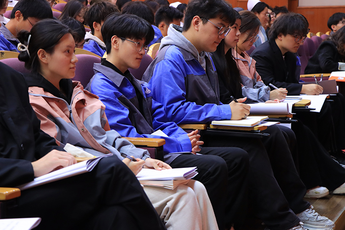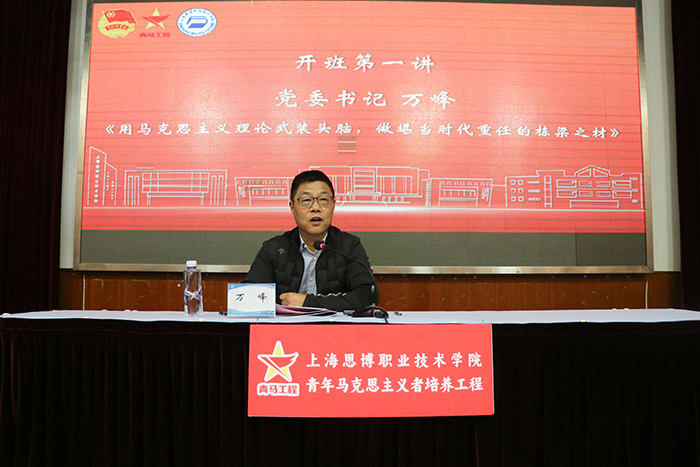 仪式结束后,党委书记万峰以《用马克思主义理论武装头脑,做堪当时代重任的栋梁之材》为题,为同学们带来了开班第一课。万书记深刻阐述了马克思主义理论对于个人成长与国家发展的重要性,详细剖析了马克思主义的三大支柱——哲学、政治经济学和科学社会主义,并着重强调了实践在探索真理、提升能力及解决问题中的不可或缺性。他鼓励青年学子作为新时代的马克思主义者,要将其应用于实际,以促进个人全面发展和社会进步,为国家的现代化建设和民族复兴贡献力量。