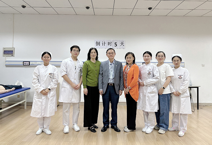在备赛的三周时间里,指导教师带领两位参赛同学全力以赴。尽管他们成绩优异、动手能力强,但仍面临巨大压力和挑战。指导老师们精心规划训练日程,邀请“标准化病人”扮演失智老人和养老行业专家进行实战模拟,从基本的护理技能操作到突发的应急处理,他们注重每一个动作和细节。同时,通过案例分析、角色扮演等方式提升综合素质。老师们不仅提供专业指导,还密切关注学生的身心状态,每天陪伴至深夜。正是凭借这种团队协作与不懈努力,两位选手最终突破自我,最终取得了比赛的优异成绩。