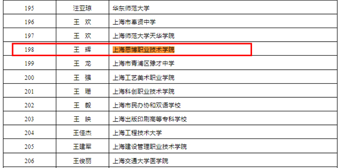 近日,上海市教委公示《2025年度上海市教育科学研究项目拟立项名单》,我校卫生技术与护理学院王辉老师申报的课题《数字时代高职院校教师数字胜任力模型构建研究》获批2025年度上海市教育科学研究项目一般项目立项。