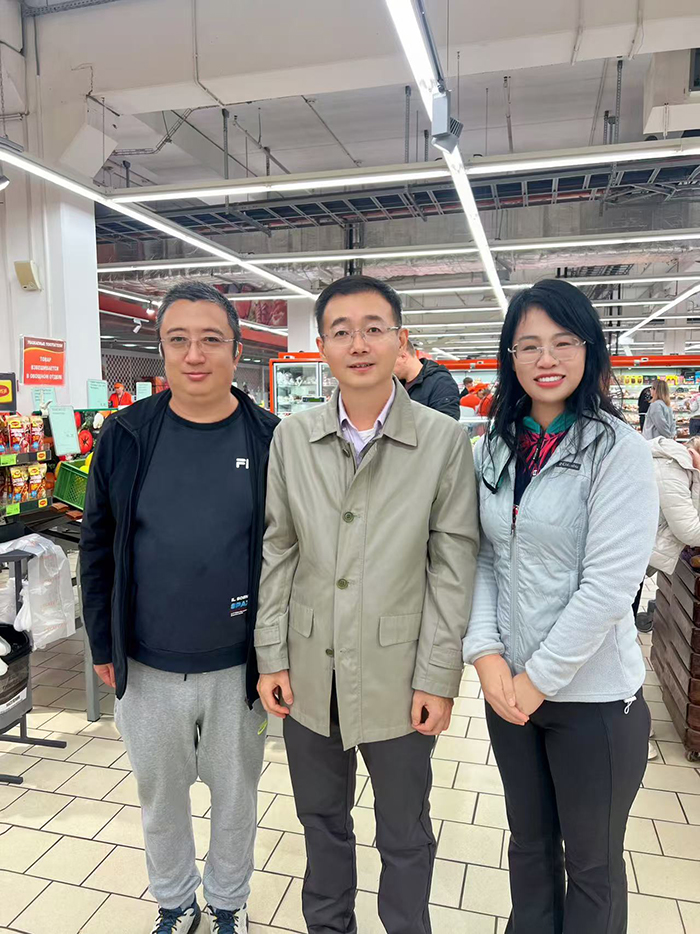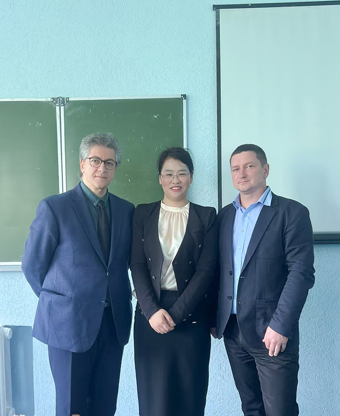 王辉副教授与中国驻白俄罗斯张汶川大使(中)、 辽宁科技大学访问学者聂雪岭副教授(左)合影