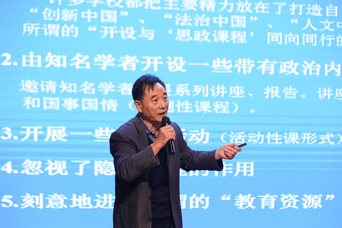 何教授从“课程思政”提出的背景与意义谈起,从教育学的视域系统阐释了“课程思政”的本质与内涵;剖析了“课程思政”实施中的误区,分析了问题产生的根源并论述了“课程思政”的实施基本方略。何教授认为,实施“课程思政”必须正确把握其本质内涵,坚持“四全育人”,即全课程育人、全员育人、全过程育人、全方位育人。只有坚持“全课程育人”,才能真正实现“三全育人”,进而提升思想政治教育实效。