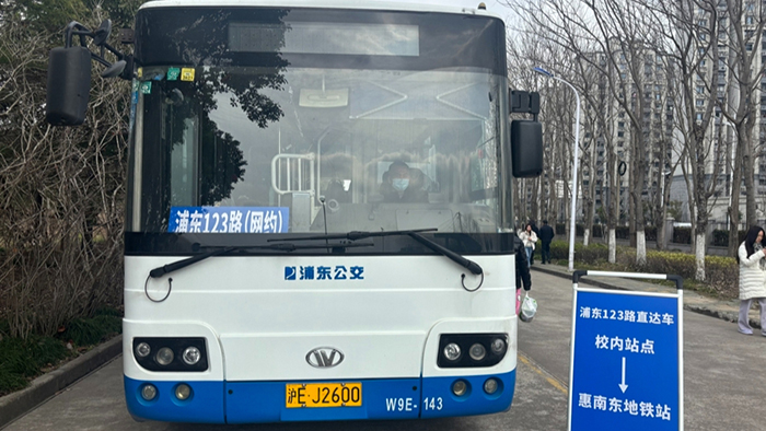 为满足师生周末及节假日离校前往轨道交通的出行难题,近日,我校携手南汇公交开通浦东123路(网约)公交专线,该线路从我校直达16号线惠南东地铁站,专属打造“校门-地铁”的点对点高效直达服务。
