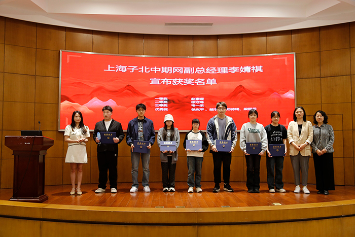 在颁奖环节,子北中期网副总经理李婧祺宣布了7位一、二、三等奖和优秀奖获奖名单,并为同学们颁奖。