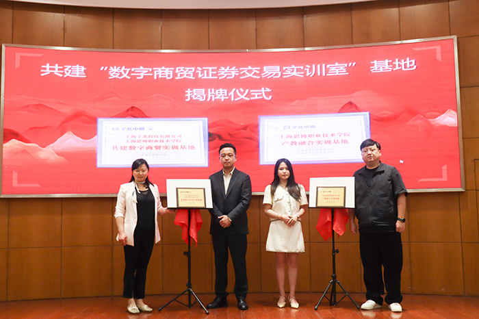 随后,校企双方代表上台签署合作协议,进行捐赠授牌,并为“数字商贸证券交易实训基地”揭牌,标志着双方合作进入了全面深化与升级的新阶段,为双方产教融合建立长期稳定、互利共赢的合作机制奠定了坚实的基础。