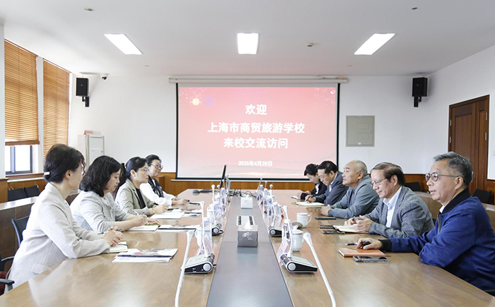 4月28日上午,上海市商贸旅游学校校长冯燕飞、副校长范瑾、教务主任曾晨、校区主任周健等一行来访我校,黄正校长,副校长张学龙、姚大伟,教务处长钱芝网、商学院常务副院长朱惠茹等热情接待。